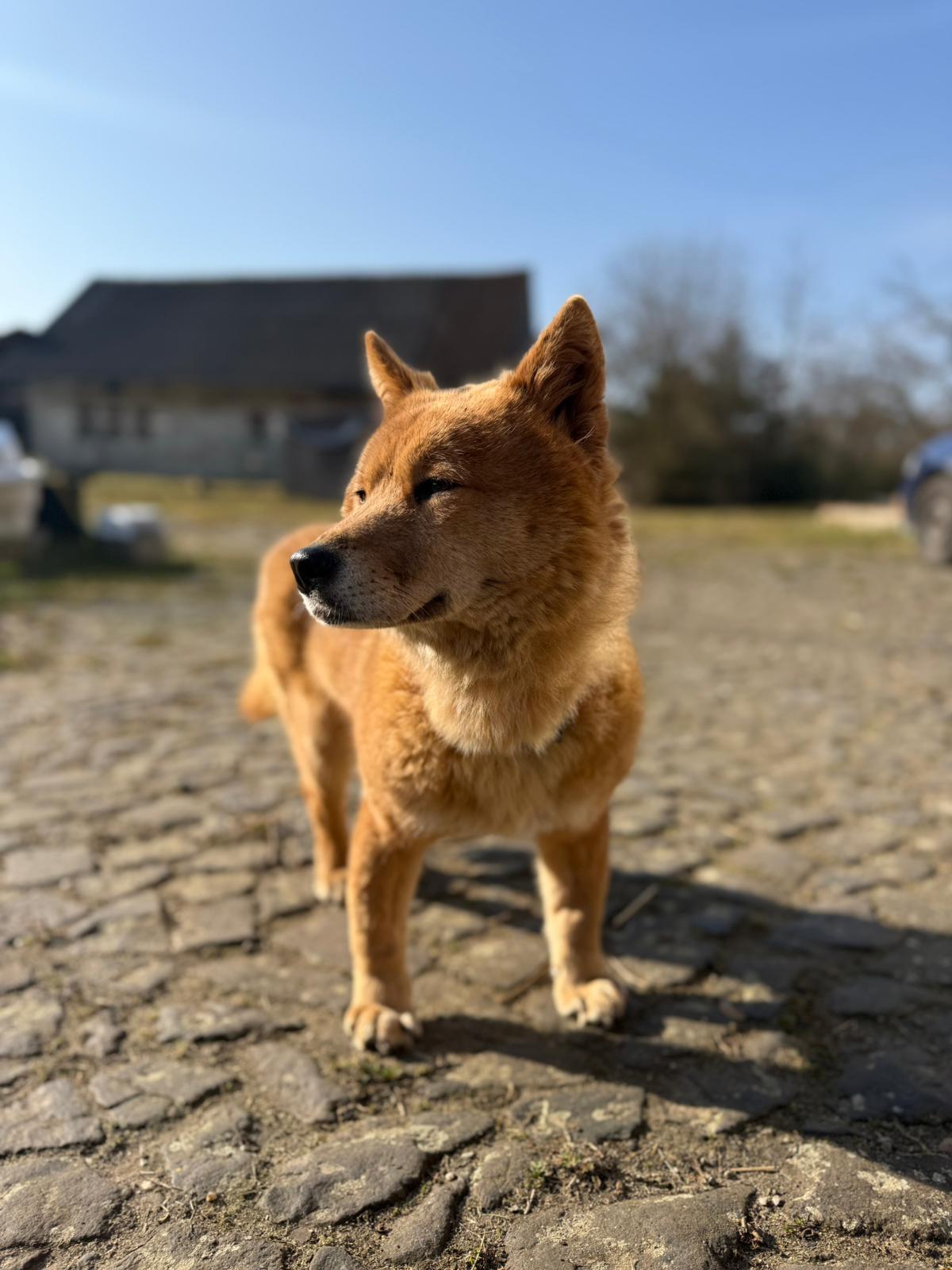 Goldie’s journey started on the streets of Korea, where she survived a difficult puppyhood. Due to early malnutrition, she developed rickets, meaning she now prefers the “calmer side of life.” Goldie isn’t looking for adventurous hikes, she’s looking for a garden where she can enjoy long, peaceful sunbathing sessions to keep her bones warm and happy. 🧘♀️✨