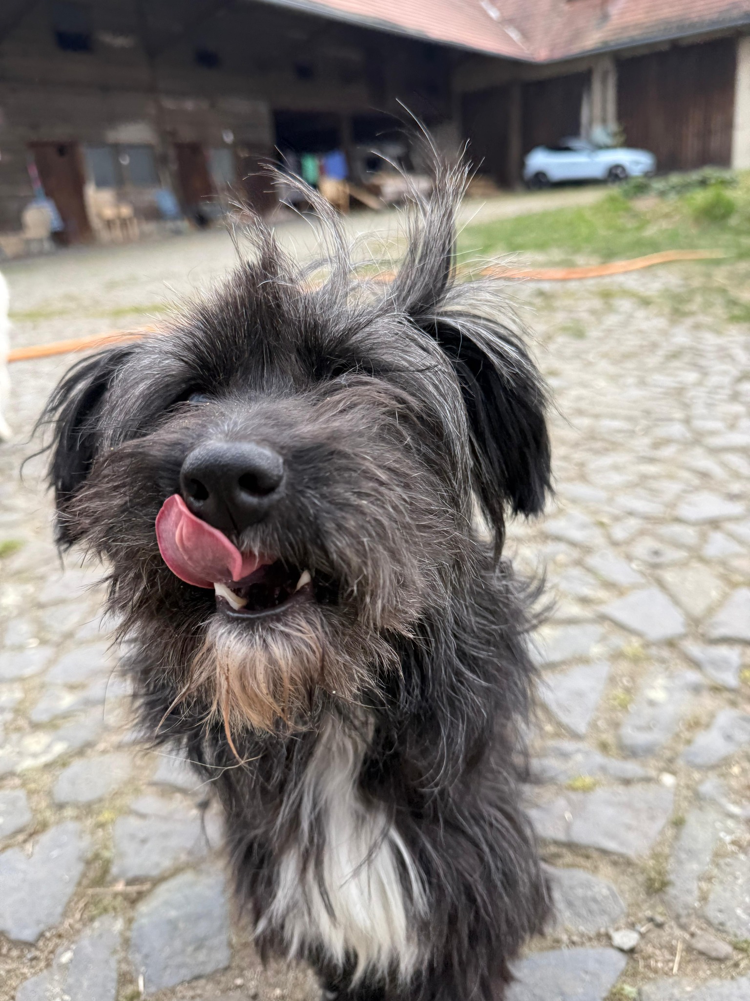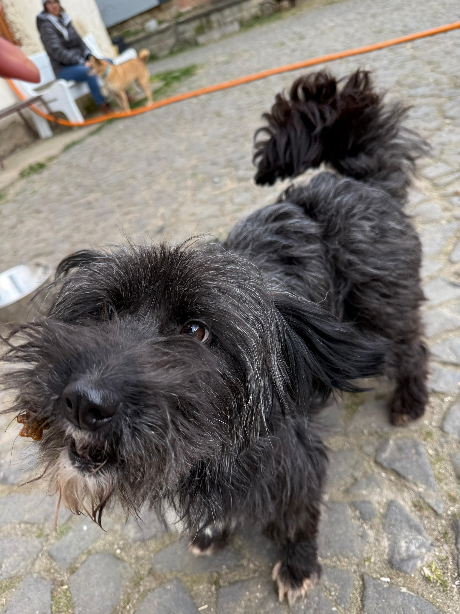 I když při prvním setkání s velkým černým psem předvedla trochu komickou „dramatickou scénku“, rychle se z toho oklepala a dnes je plně začleněná do naší smečky velkých psů. S ostatními psy vychází dobře, ale když dojde na rozdávání pamlsků, stává se z ní pořádná „šéfová“. Nemá problém si zavrčet, aby si udržela svůj osobní prostor, což ukazuje její výraznou a odvážnou osobnost.